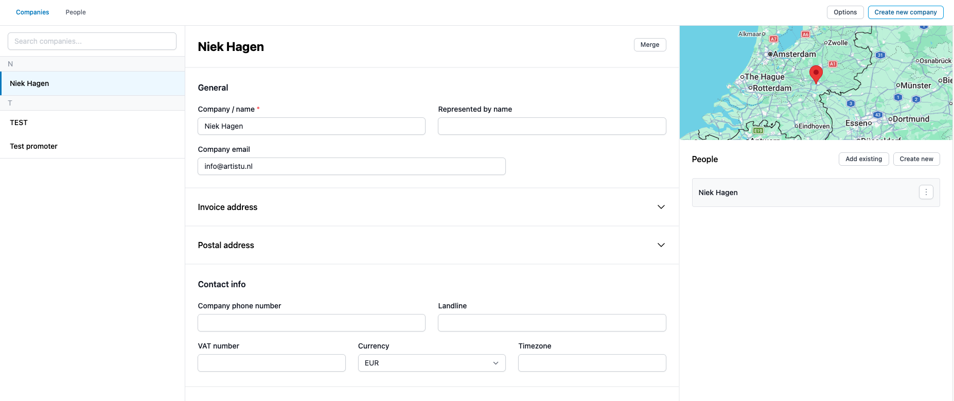 You can now add individual people to any contact in Artistu. A venue can have its booker, production manager and hospitality contact, each with their own name, email and phone number.