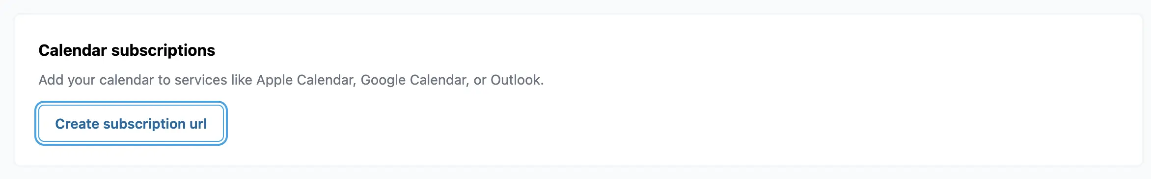 Go to your Settings page and scroll to the bottom to find the Calendar subscriptions section. Click on Create subscription.