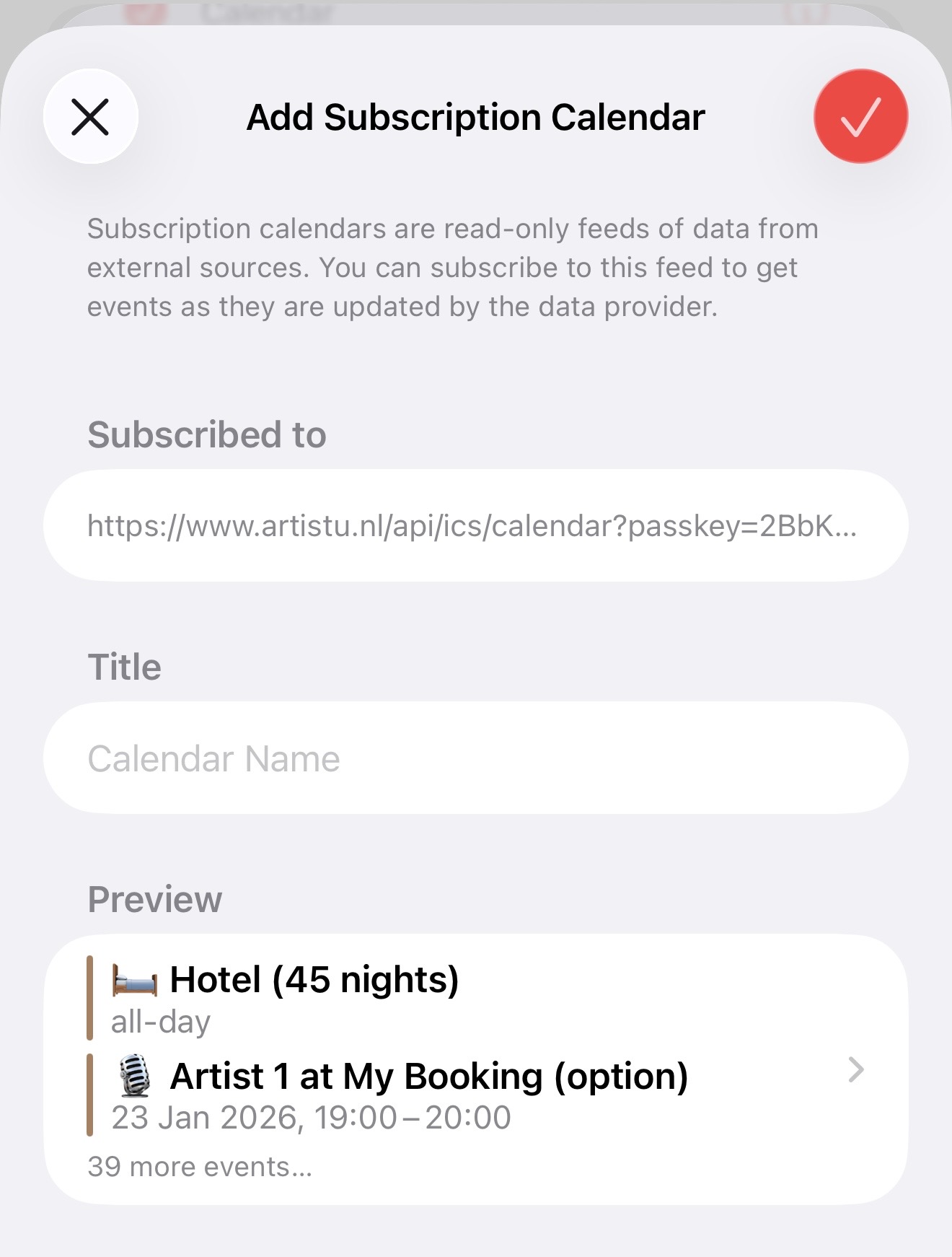 You can sync your Artistu booking schedule directly to your Apple Calendar on iPhone or iPad using a subscription URL. This ensures your mobile calendar is always up-to-date with your latest bookings.