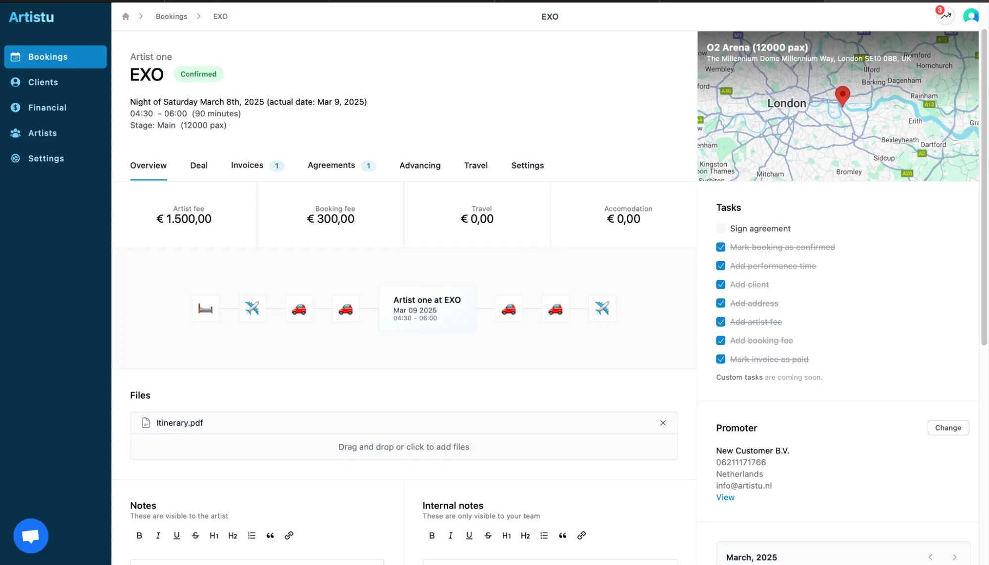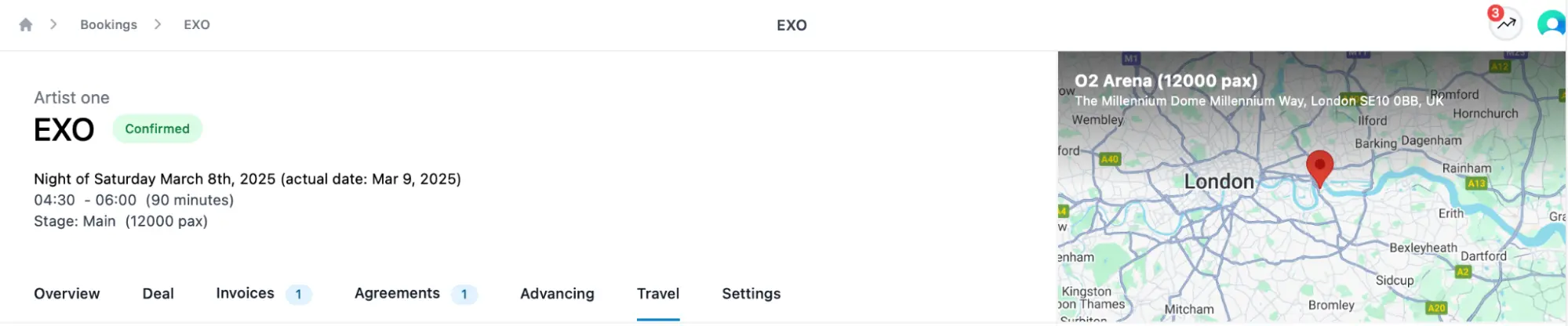 This feature helps both your team and the artist stay informed about event locations and logistical planning.